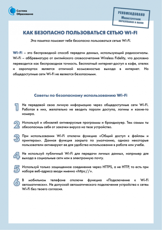 Советы по безопасности работы в общедоступных сетях Wi-fi: