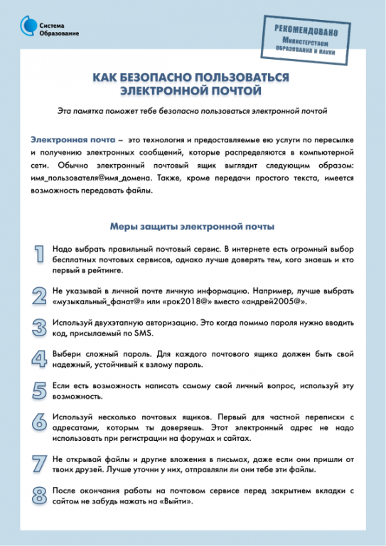 Основные советы по безопасной работе с электронной почтой: