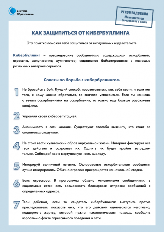 Основные советы по борьбе с кибербуллингом: