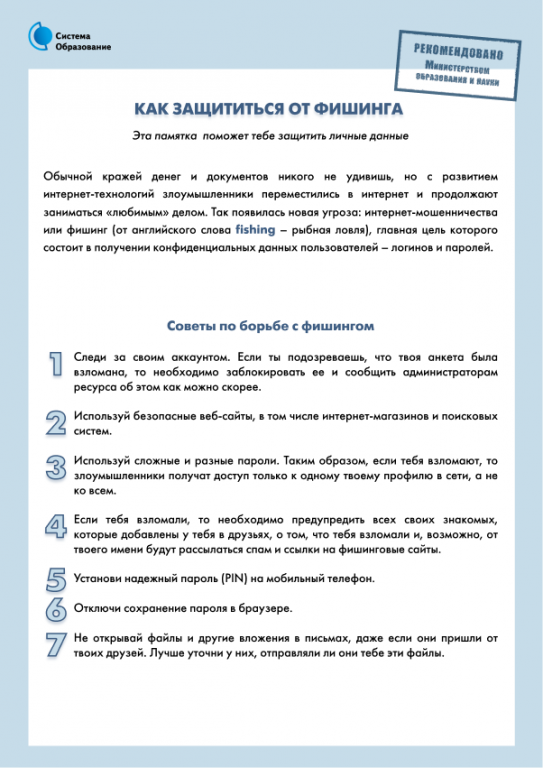 ИНФОРМАЦИОННАЯ ПАМЯТКА ДЛЯ ОБУЧАЮЩИХСЯ ДЛЯ РАЗМЕЩЕНИЯ НА ОФИЦИАЛЬНЫХ ИНТЕРНЕТ-РЕСУРСАХ
