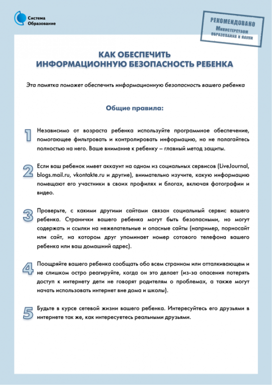 - Если Ваш ребенок имеет аккаунт на одном из социальных сервисов (LiveJournal, blogs.mail.ru, vkontakte.ru и т.п.), внимательно изучите, какую информацию помещают его участники в своих профилях и блогах, включая фотографии и видео.