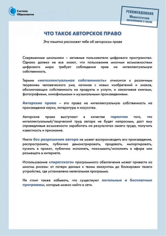 Современные школьники - активные пользователи цифрового пространства. Однако далеко не все знают, что пользование многими возможностями цифрового мира требует соблюдения прав на интеллектуальную собственность.